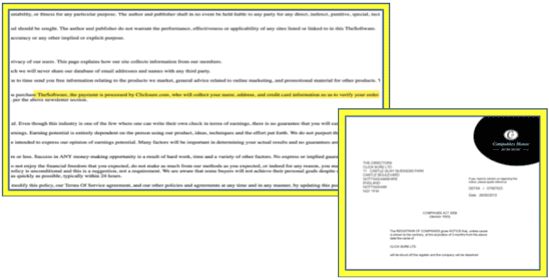Evidence showing a company used by the scammers no longer exists